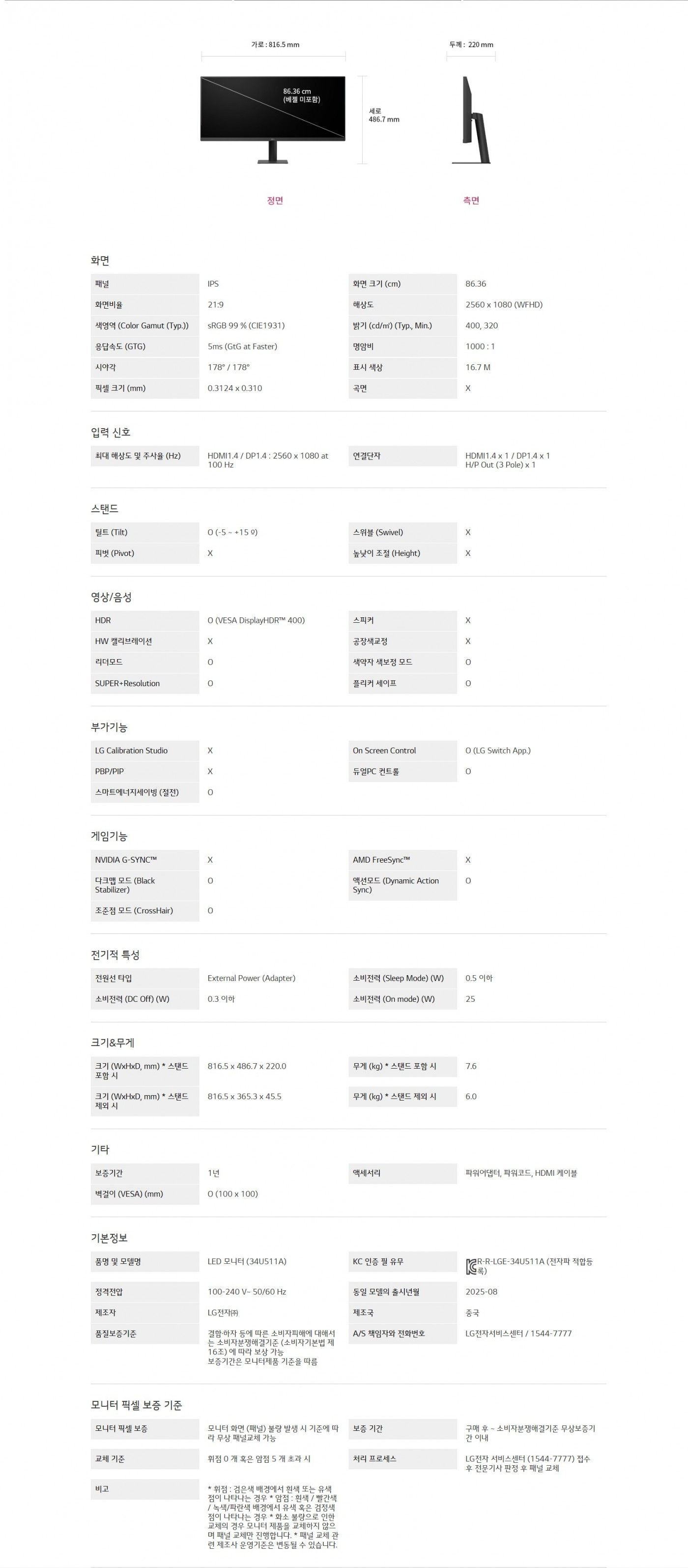 86.3cm WFHD IPS 디스플레이