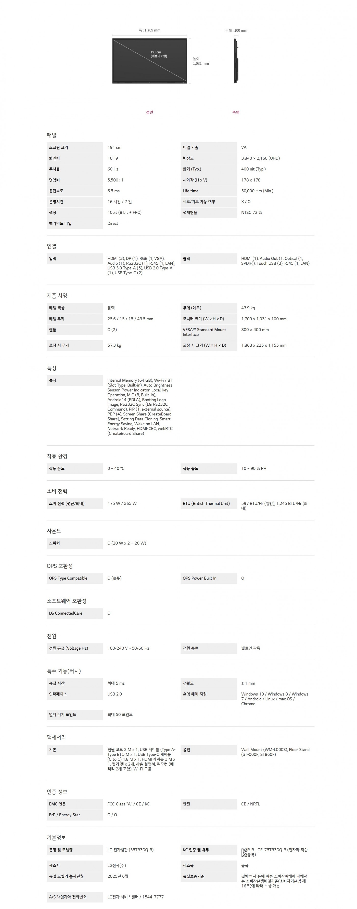 LG 전자칠판 + 벽걸이 브라켓