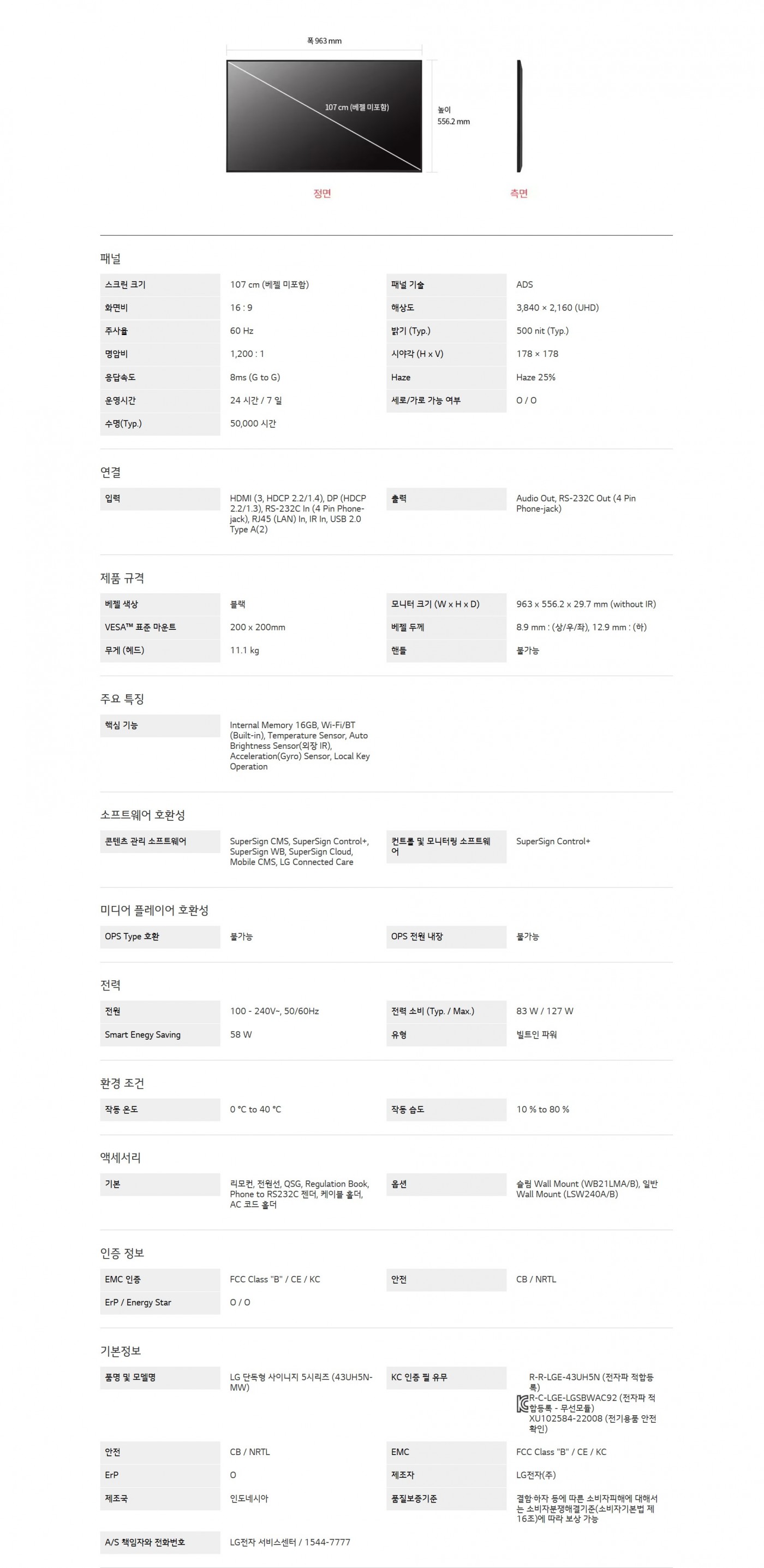 LG 단독형 사이니지 5시리즈 + 벽걸이 브라켓