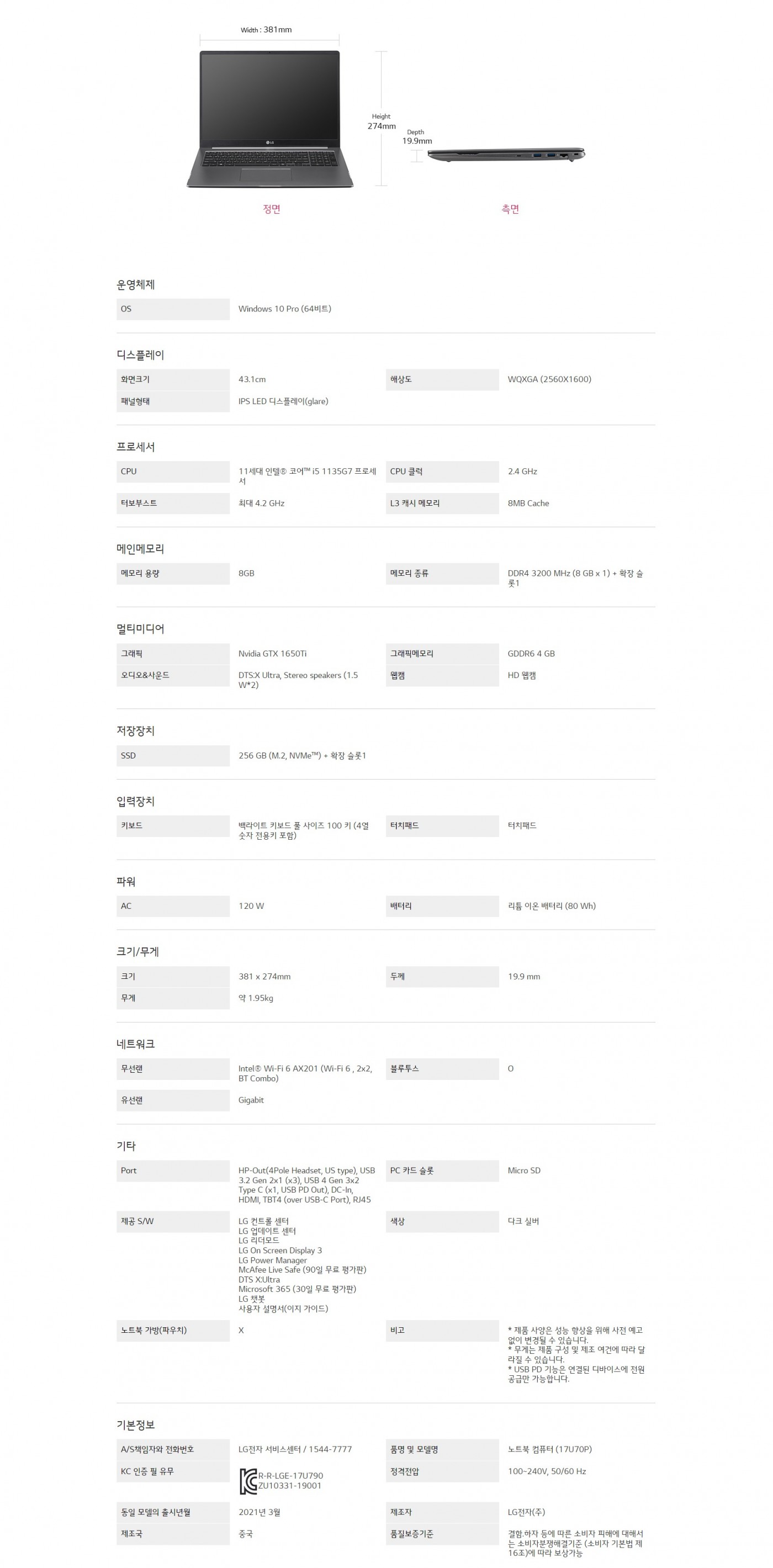 OS : Windows 10 Pro (64비트)CPU : 11세대 인텔® 코어™ i5 1135G7 프로세서SSD : 256 GB (M.2, NVMe™) + 확장 슬롯1