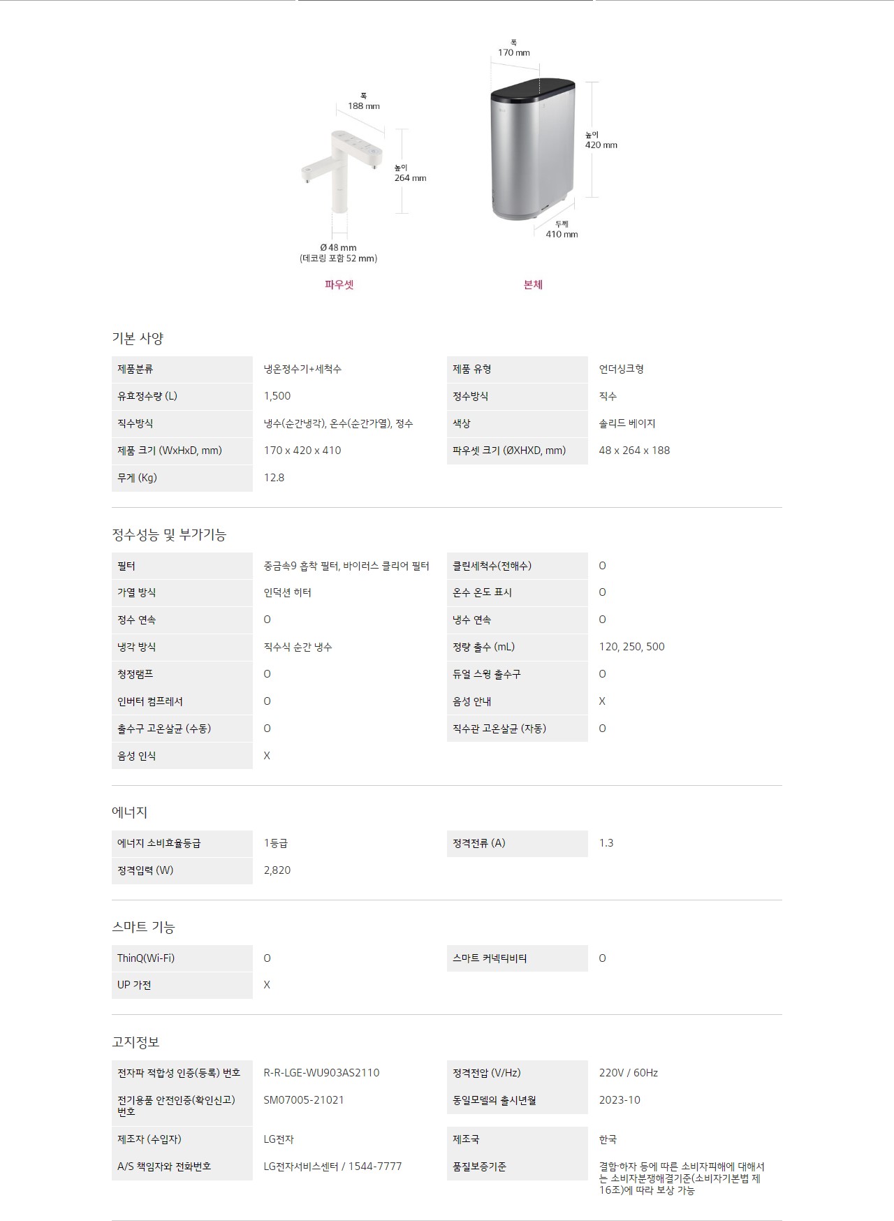 LG 퓨리케어 오브제컬렉션 정수기(듀얼, 냉온정)