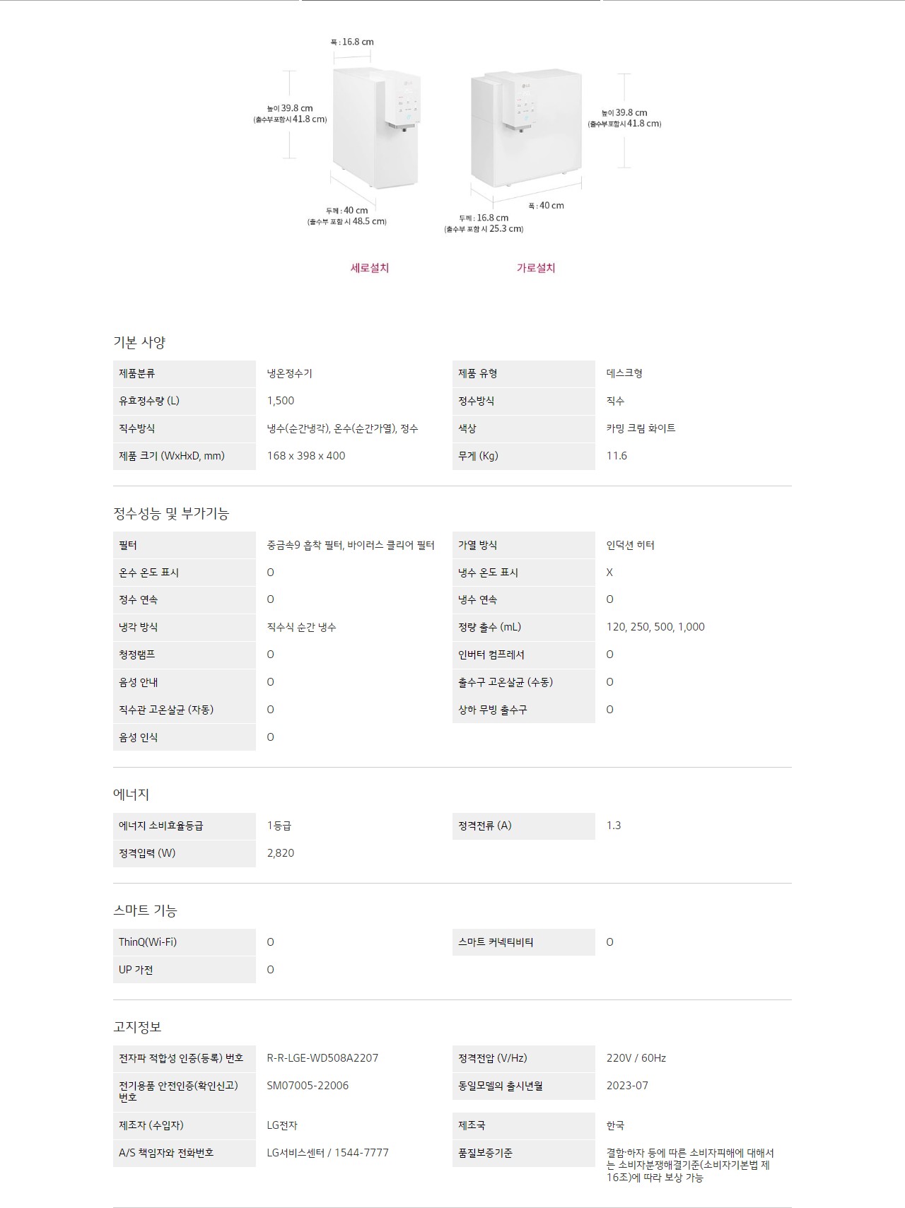 LG 퓨리케어 오브제컬렉션 정수기(음성인식/맞춤 출수, 냉온정)
