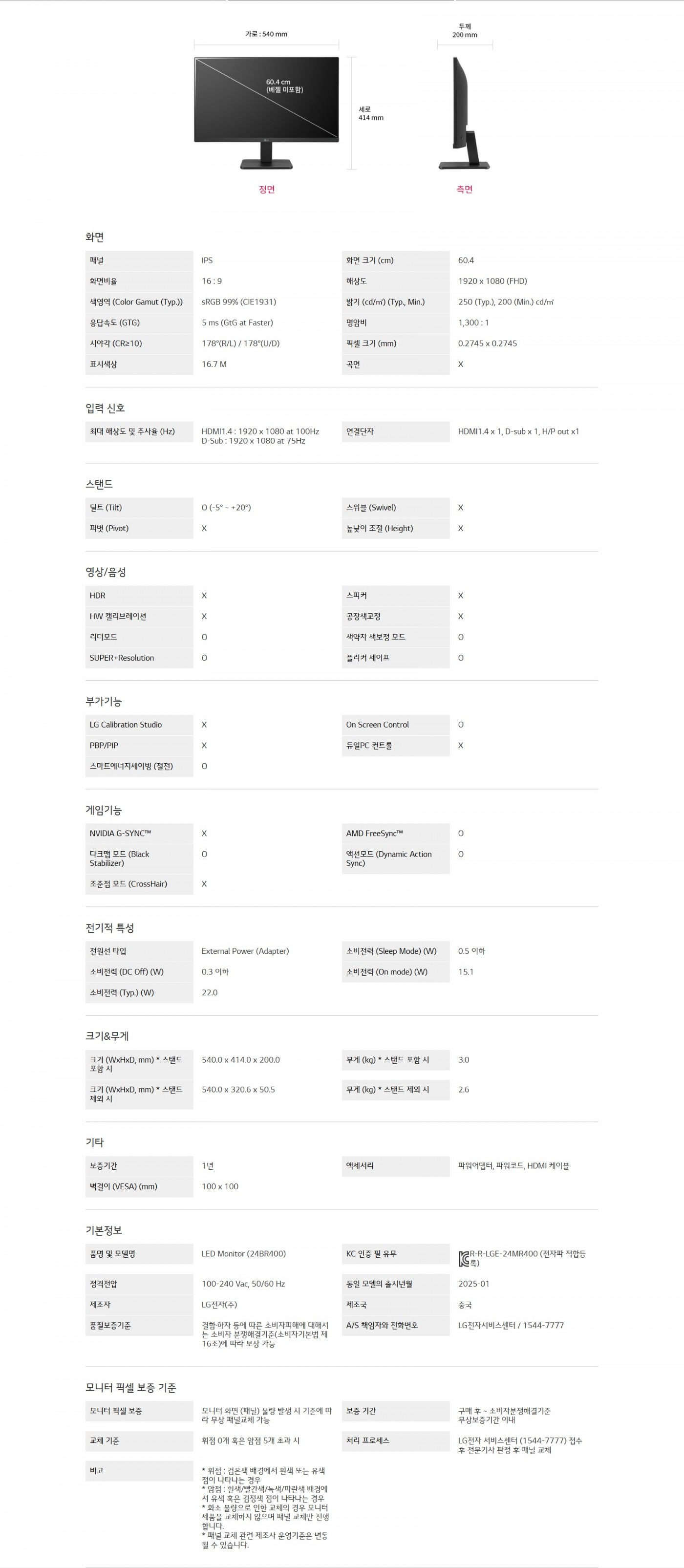 화면 크기 (cm) : 60.4