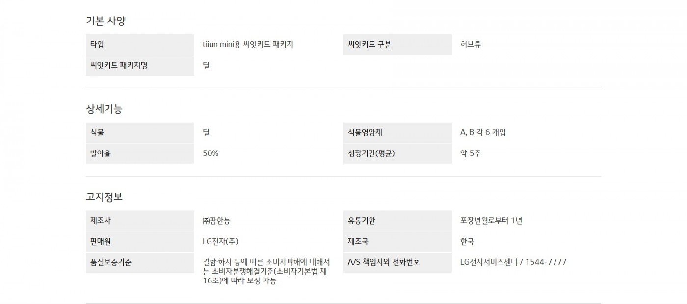 LG 틔운 미니용 씨앗키트 패키지 (딜)